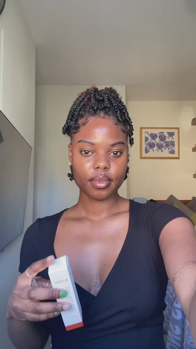 "Ma routine du matin avec Ébène Skin. Le nettoyant est ultra doux et le sérum pénètre en 10 secondes."